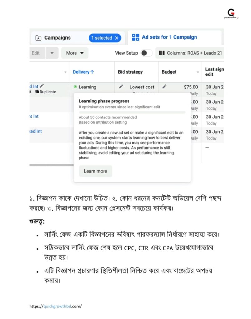 - Learning phase, ads fragmentation and ad fatigue secret trick